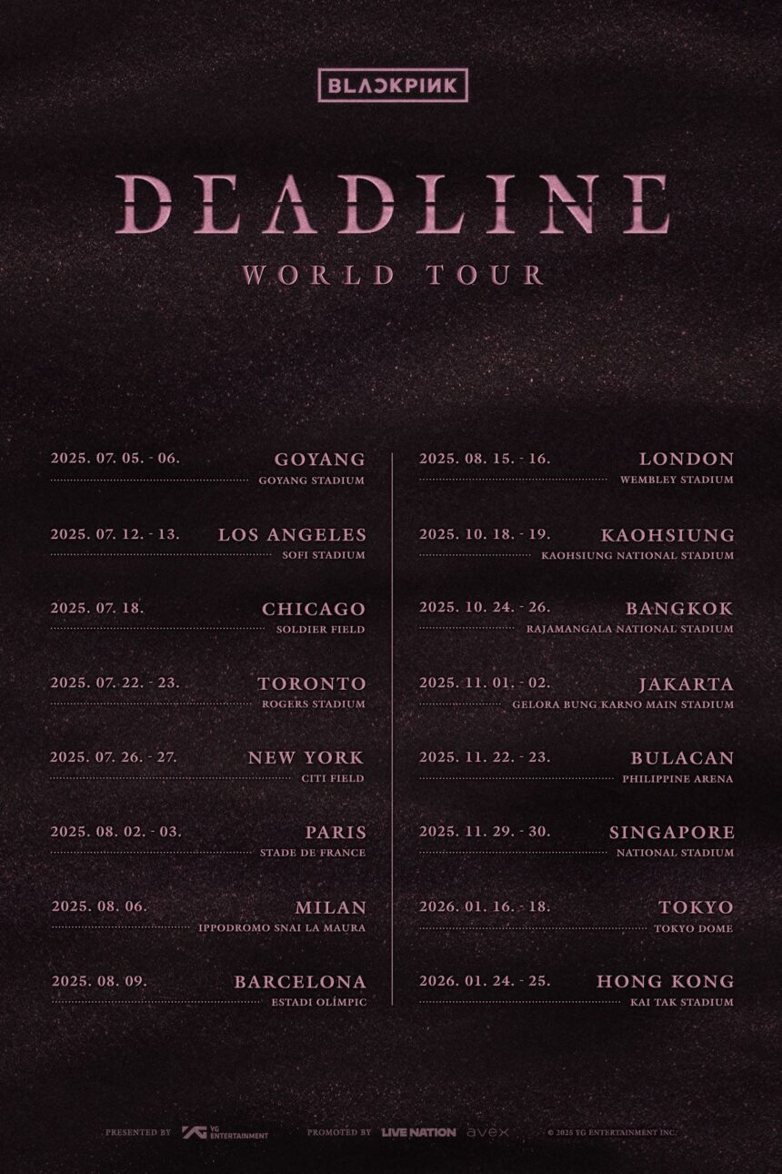 Blackpink began their Deadline World Tour on Saturday, July 5, in their native South Korea. They will play North American shows in July, and the tour will stretch into the beginning of 2026. See all of Blackpink’s upcoming tour dates below.