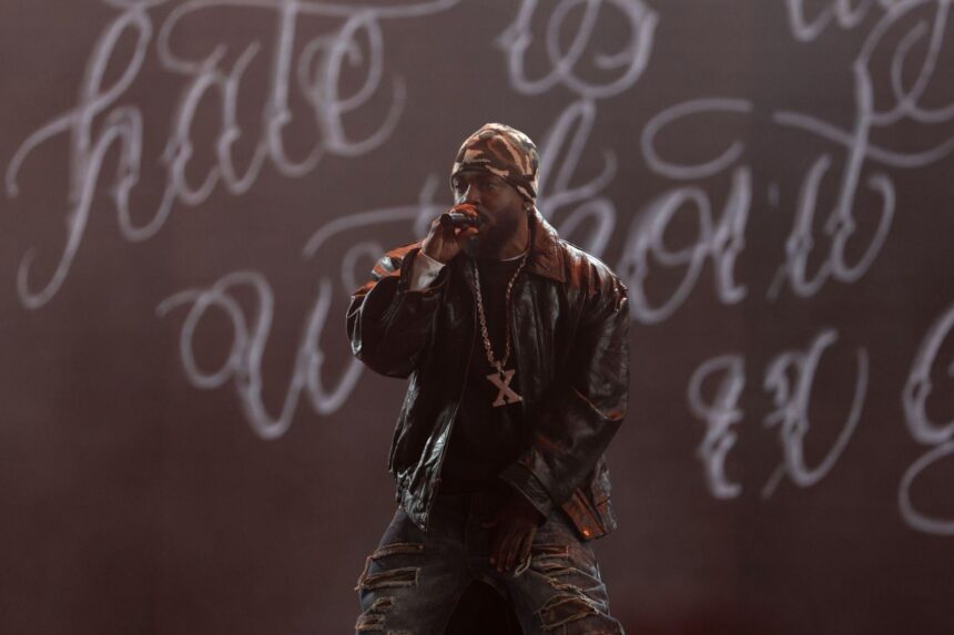 Last night (Saturday, April 19), Kendrick Lamar and SZA played the first show of their joint Grand National Tour at Minneapolis’ U.S. Bank Stadium. Over the span of a mammoth, 52-song setlist, the musicians and former TDE labelmates traded the stage back and forth and debuted tracks from their newest releases—2024’s GNX and SOS Deluxe: Lana. Lamar began his first set rapping “Wacced Out Murals” from behind the wheel of his now-signature black Buick, while SZA’s performances featured an insectoid flair throughout, including a video of a female praying mantis devouring her mate that played while she sang “Kill Bill.” The two duetted on “30 for 30,” “Doves in the Wind,” “All the Stars,” “Love.,” “Gloria,” and their No. 1 hit single “Luther.” Check out the full setlist, plus photos and footage of the show, stage, and merchandise, below.