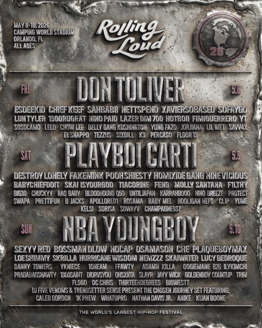 The world’s biggest hip hop festival, Rolling Loud, is back again and ready for its 2026 US chapter. Set to captivate fans at the Camping World Stadium in Orlando, FL from May 8-10, the festival is already sold out in terms of the pre-sale tickets. More tickets available here.