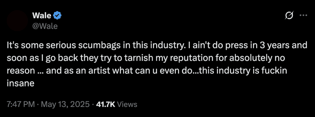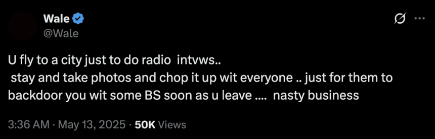 Most recently, Wale expressed this sentiment taking to X, where he vented about what he considered an inappropriate moment in an interview. The rapper was on a show called The Morning Hustle, where he claims to have been ambushed by inappropriate questions concerning Diddy.