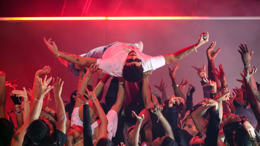 Bad Bunny was one of the performers at the 2025 iHeartRadio Music Awards, which took place this evening, March 17, at Los Angeles’ Dolby Theatre. The Puerto Rican star took to the stage in an oversized white coat to perform the DeBÍ TiRAR MáS FOToS cut “EoO,” which he sang while sauntering across an elevated platform, trust falling off it, and crowdsurfing over a crew of dancers. Watch it below.