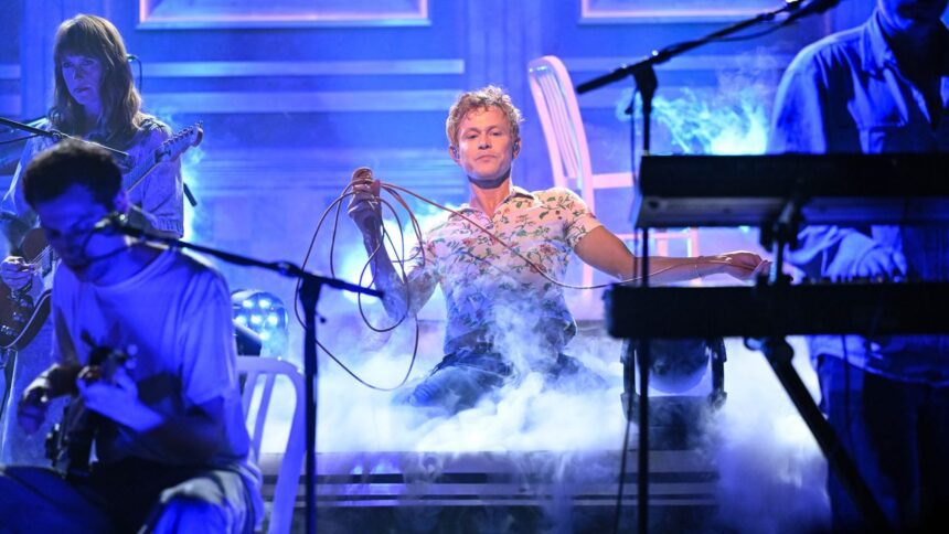 Perfume Genius stopped by The Tonight Show Starring Jimmy Fallon on Thursday (April 3), where Mike Hadreas and his band performed “It’s a Mirror” from his new album Glory. Hadreas commenced the performance sprawled across a rotating chair, then walked downstage amid billowing fog for a live rendition of the track. Hadreas’ longtime collaborator and partner Alan Wyffels was on keys, while a number of the musicians who recorded on Glory filled out the live band. Watch it happen below.